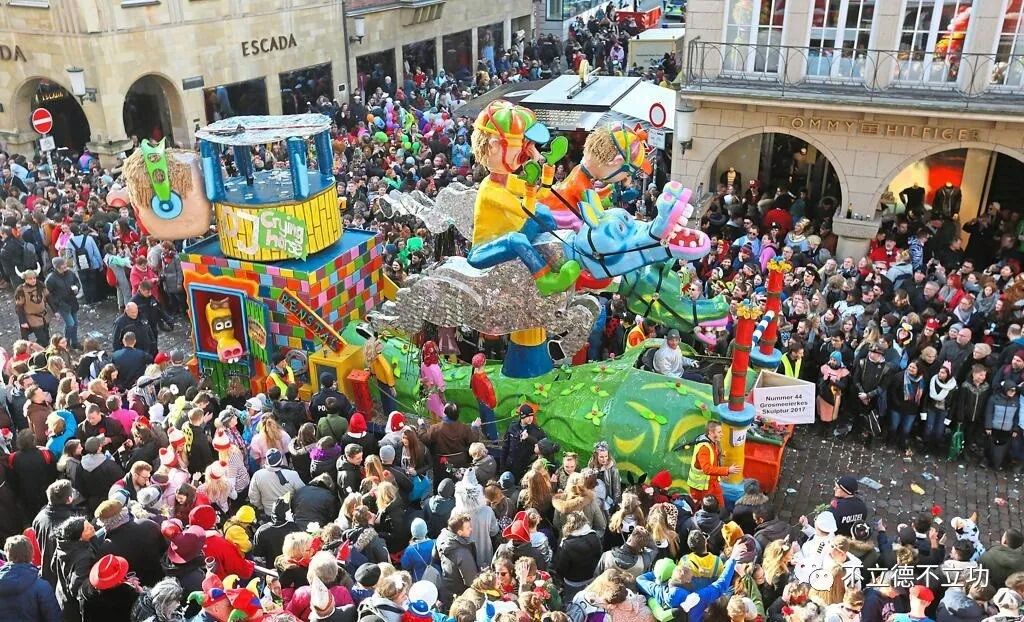 不同于威尼斯、南美洲尤其是里约热内卢、美国新奥尔良,乃至加拿大魁北克的狂欢节,经年累月之后,在德国的狂欢节中糅入了很浓厚的政治意味。在莱茵河沿岸的狂欢节三大重镇科隆、杜塞尔多夫和美因茨,每年“玫瑰星期一”彩车大游行中的一个重要项目是针砭时政和要人的主题。有时,为了充分运用最新的大事、丑闻,狂欢节组织委员会之中的彩车制作者们会赶在大游行前彻夜改造,而且事先动用各种保密措施,以防“剧透”。一到狂欢节,平日里气宇轩昂的政要与名流们冷不防地会发现,自己的形象乍然以很不堪的方式在彩车上登场,沿路地贻笑大方。比如,以执政长达16年的德国前总理默克尔夫人而言,她的个性并不激烈、张扬,举止和穿着也刻意低调、普通,但居然也曾被以“嗜血”的“黑寡妇”形象登(彩)车,在她的“蜘蛛”脚下滚落的是她历年来所挑翻、挤开的党内外对手们的“骷髅”。