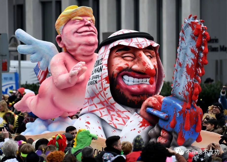 不仅是内政,狂欢节上也乐此不疲地拿国际时事和外国政要来开涮。每逢乱世,虽然风雨飘摇之下难免生灵涂炭,但是与“国家不幸诗家幸,赋到沧桑句便工”同理,德国狂欢节的彩车制作者们就不愁缺乏主题。像美国前总统特朗普这样特立独行、世所仅见的“现世报”式的人物,虽然在他先祖栖息的母国——德国也很不受待见,但他“叱咤风云”的那几年实在是彩车制作者们的最爱。若不是疫情中断的话,特朗普在任期间原本可以收获更多的“造型设计”。