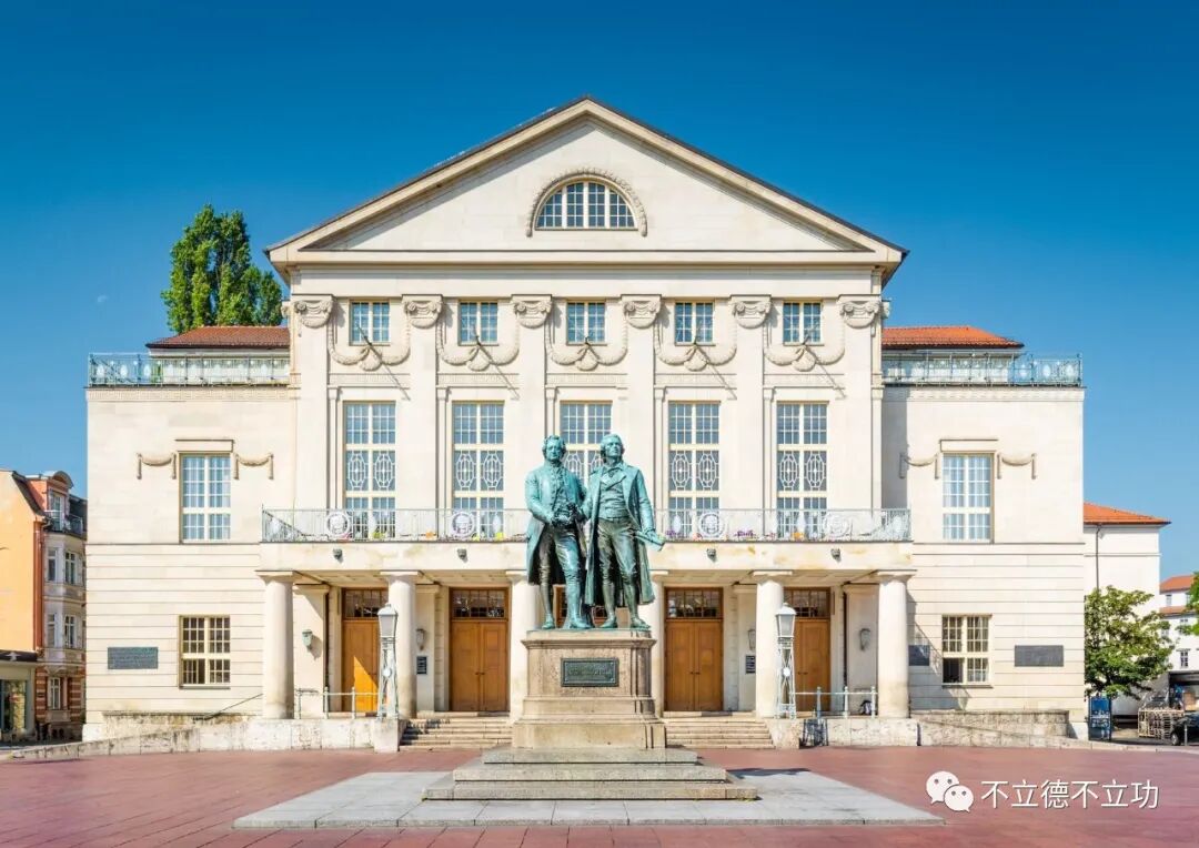 魏玛国立剧院和门前的歌德与席勒纪念像