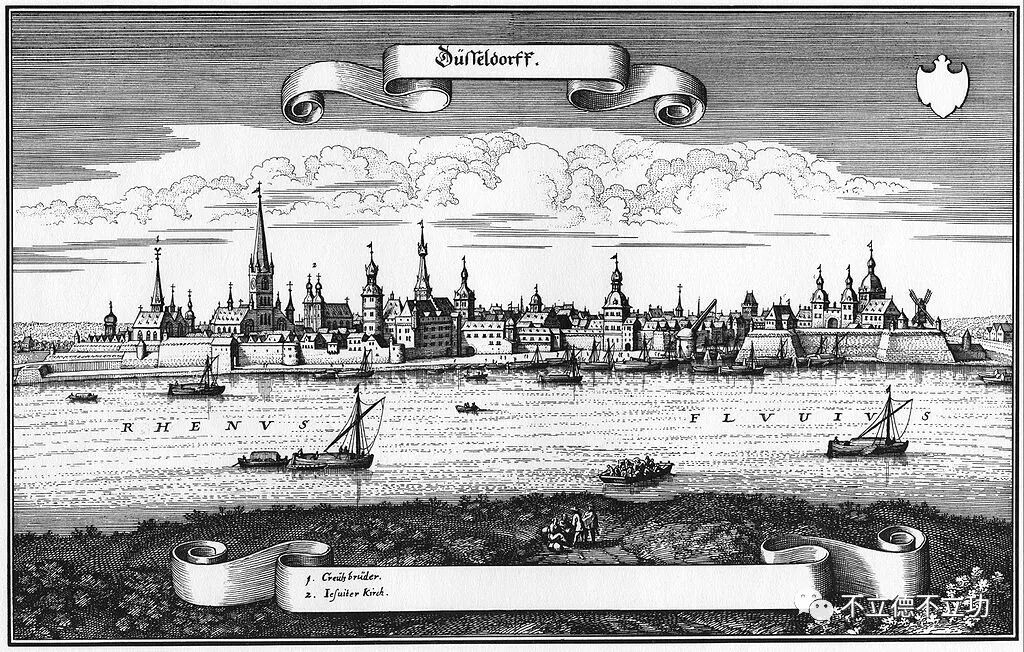 德国西部城市杜塞尔多夫位于杜塞小河汇入莱茵河的河口,如今是德国体量最大的联邦州、北莱茵—威斯特法伦州的首府。这一地位最早是由普鲁士奠定的,在维也纳和会之后,普鲁士得以向西扩张,确定以杜塞尔多夫作为莱茵省的省会。在此之前,杜塞尔多夫只是一个籍籍无名的小城、伯爵领地。历史上最大的辉煌莫过于十七/十八世纪时的领主Jan Wellem后来获得了选帝侯头衔,而他生涯中最大的功业恐怕是结亲有道——Jan Wellem大公娶到了出自美第奇家族的Anna