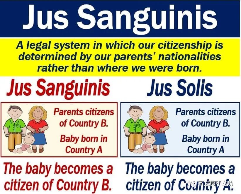 图解国籍制度中的两大派别:血统主义(Jus Sanguinis)和出生地主义(Jus