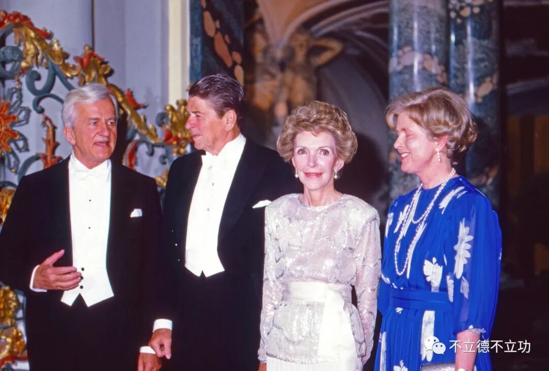联邦总统冯·魏茨泽克夫妇在欢迎美国总统里根夫妇的国宴上