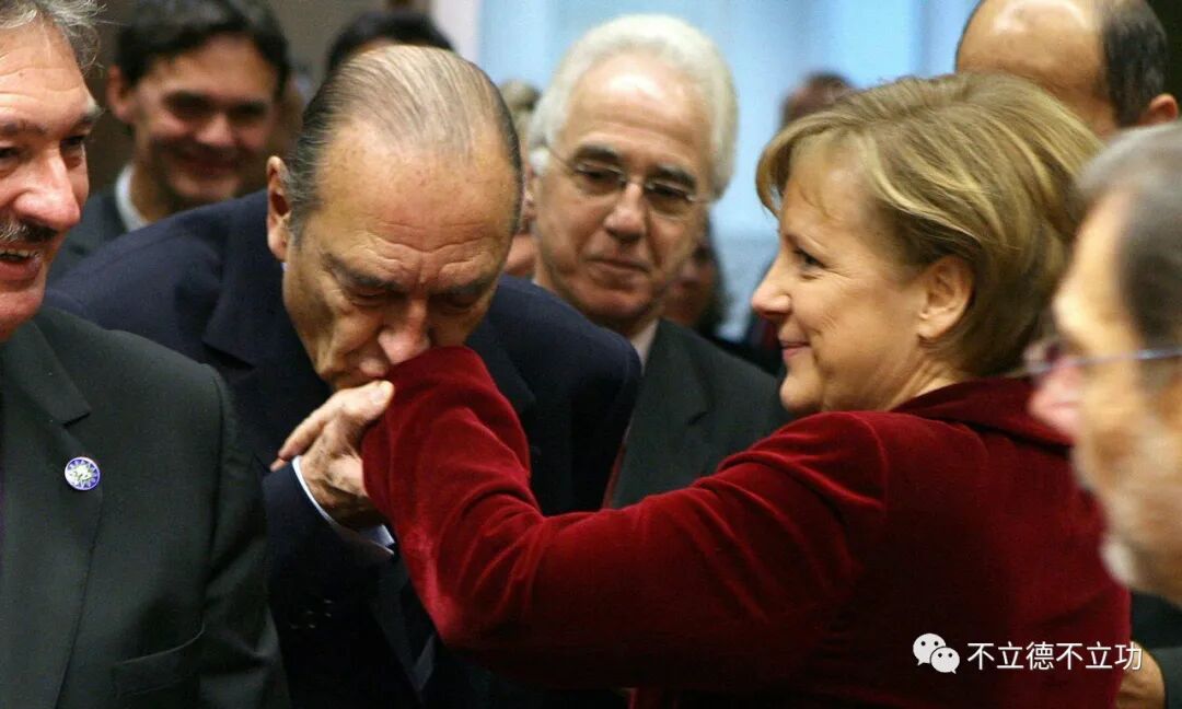 老派却并未在外交场合过时的吻手礼,时为法国总统的希拉克对德国总理默克尔行吻手礼