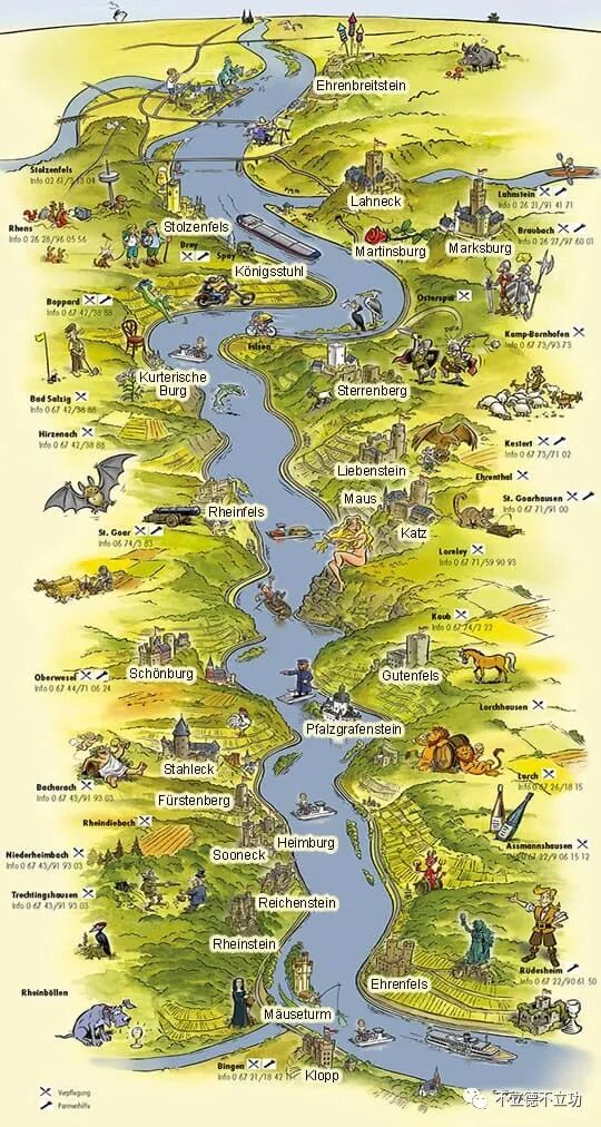 卡通版的莱茵河谷示意图,被列入世界文化遗产名录