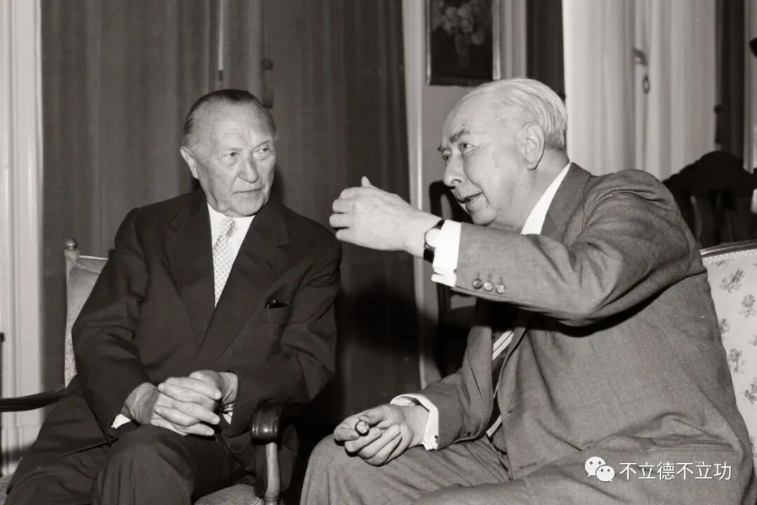 西德的开国总统与总理:联邦总理阿登纳(左)、联邦总统豪斯(右)