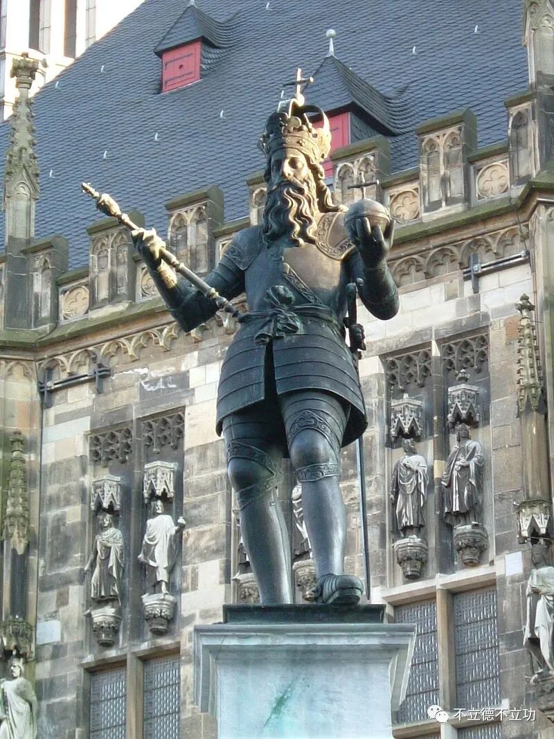 在公元后9年的条顿堡森林之战中(见前文:《德国最古老的城市》),罗马因为轻敌而一下子葬送了三个军团,痛定思痛之余收缩防线,亚琛也就此脱离了最初建立者的控制。在罗马帝国覆灭之后过渡到所谓“黑暗中世纪”的动荡期,各种军阀、豪强“乱哄哄你方唱罢我登场”,一直到法兰克人雄霸一方之后,才形成一个相对稳定的格局。