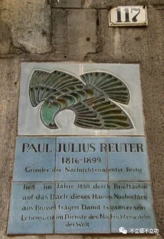“路透”始祖罗伊特当年放飞信鸽的纪念铭牌