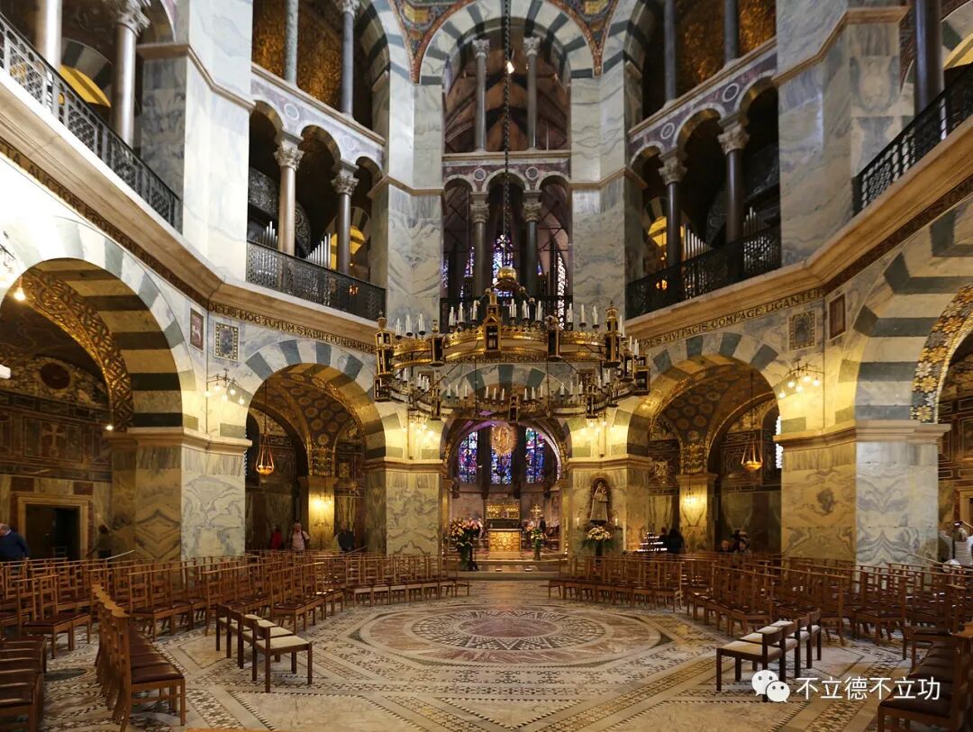 亚琛大教堂不同凡响的八角形穹顶在近千年的时间段里,一直是号称阿尔卑斯山以北最大的圆顶。穹顶之下就是查理曼大帝的统治中心,也在日后见证了一代一代头顶王冠的王子王孙们,也领教了围绕着这顶王冠的各种阴谋诡计、此兴彼落。最为落魄时,北欧海盗维京人曾经攻破都城亚琛。被当时的欧洲人视为野蛮人、异教徒的维京人真是不吝捍卫自己的凶暴恶名,居然就在亚琛大教堂最为神圣的穹顶之下饲养战马。
