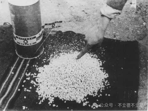 在解放马伊达内克(Majdanek)集中营时发现的齐克隆B药丸。