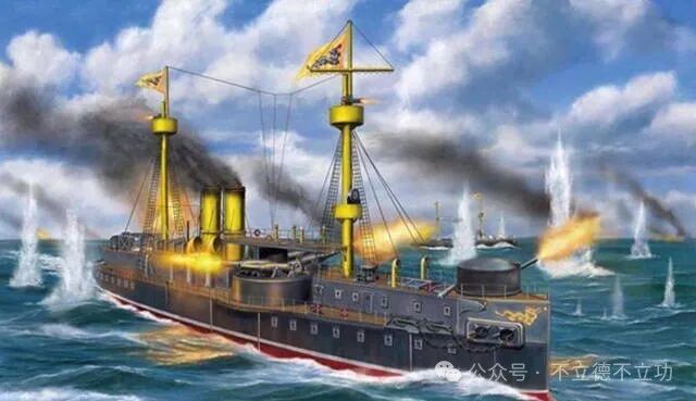 大东沟海战中的北洋舰队旗舰“定远”舰