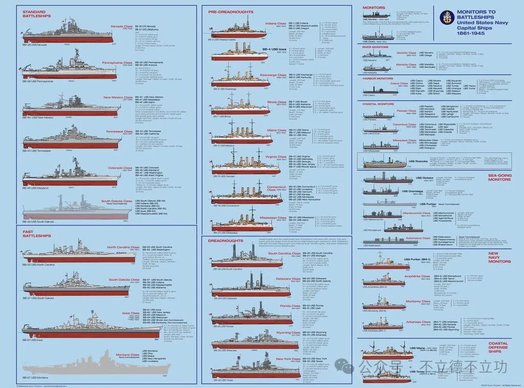 美国海军中从1861年到1945年的各型以州名来命名主力舰(state
