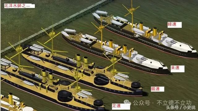 欲求“船坚”的话,以当年清国不具备成形的系统工业,只能向“西番”求购。经历曲折,一开始难免受骗上当。后来,在北洋大臣、直隶总督任上的李鸿章花费15年时间、倾尽上千万两白银打造出来一支龙旗飘扬的舰队。是为以威海刘公岛为母港、以旅顺口为维护基地的“北洋舰队”。其主力战舰全部购自英、德两国,但按照其中吨位、火力和威慑力来论,依次被视为舰队最核心主力的定远、镇远、济远、经远、来远各舰都是在德国订制。论建造的时间顺序,也恰好符合吨位、地位的顺序。