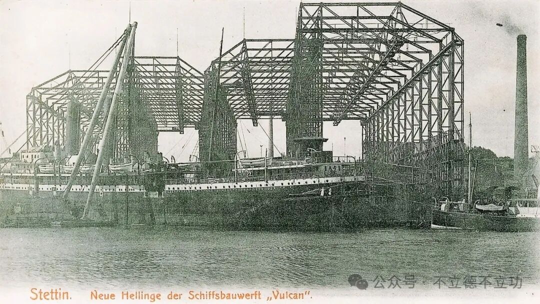 在德国“伏尔铿”造船厂舾装的“定远”舰