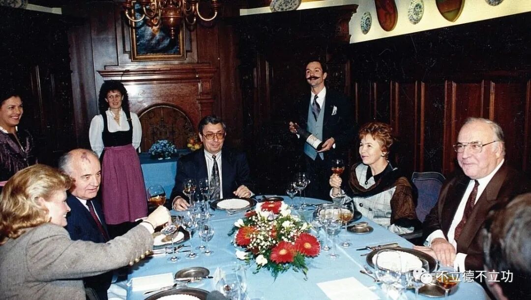 科尔与戈尔巴乔夫携各自夫人在斯派尔共进晚餐
