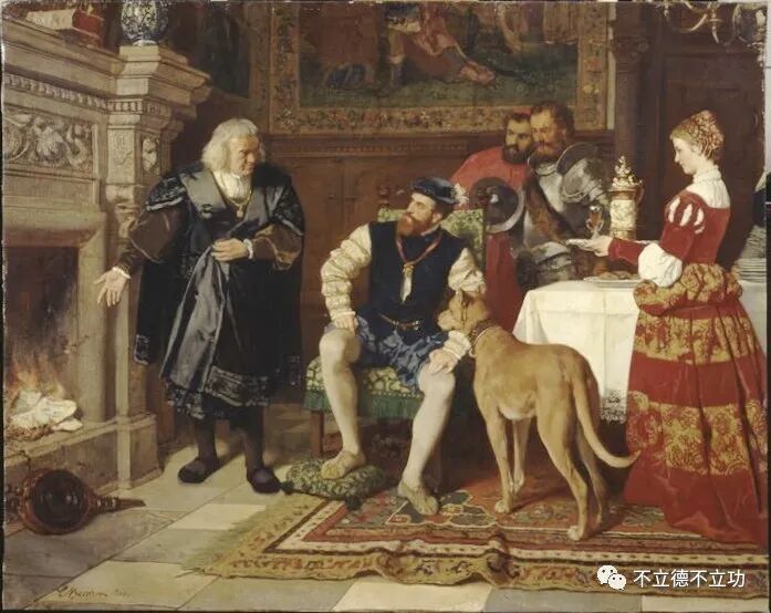 油画:在查理五世面前焚烧欠条的雅各布·富格尔