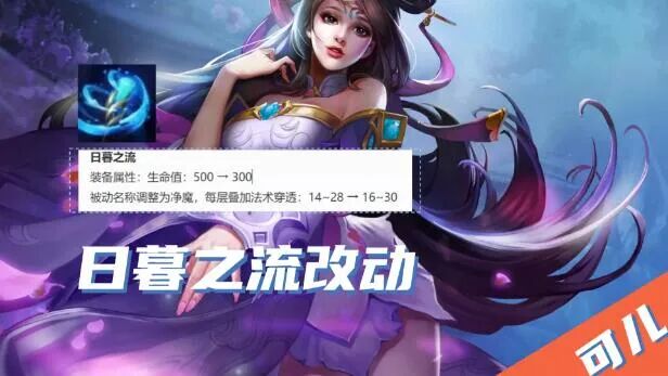 此外还有日暮之流这件装备的属性也得到了调整,生命值加成降低了300点,但是每层提供的法术穿透提高了2点。满层提高了20点法术穿透,后期满层更是可以提供300点法穿。
