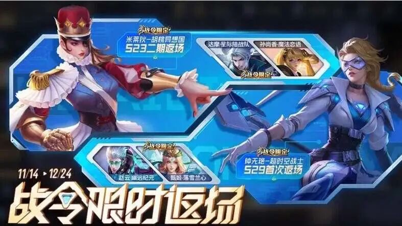 近期王者荣耀返场了战令皮肤,这次返场的是S23赛季和S29赛季的战令皮肤。和以往的战令皮肤一样,这一次也依旧是通过战令币商城返场,用战令币购买礼包抽取皮肤,每一款皮肤都有保底,达到保底的数量之后就会必得皮肤。