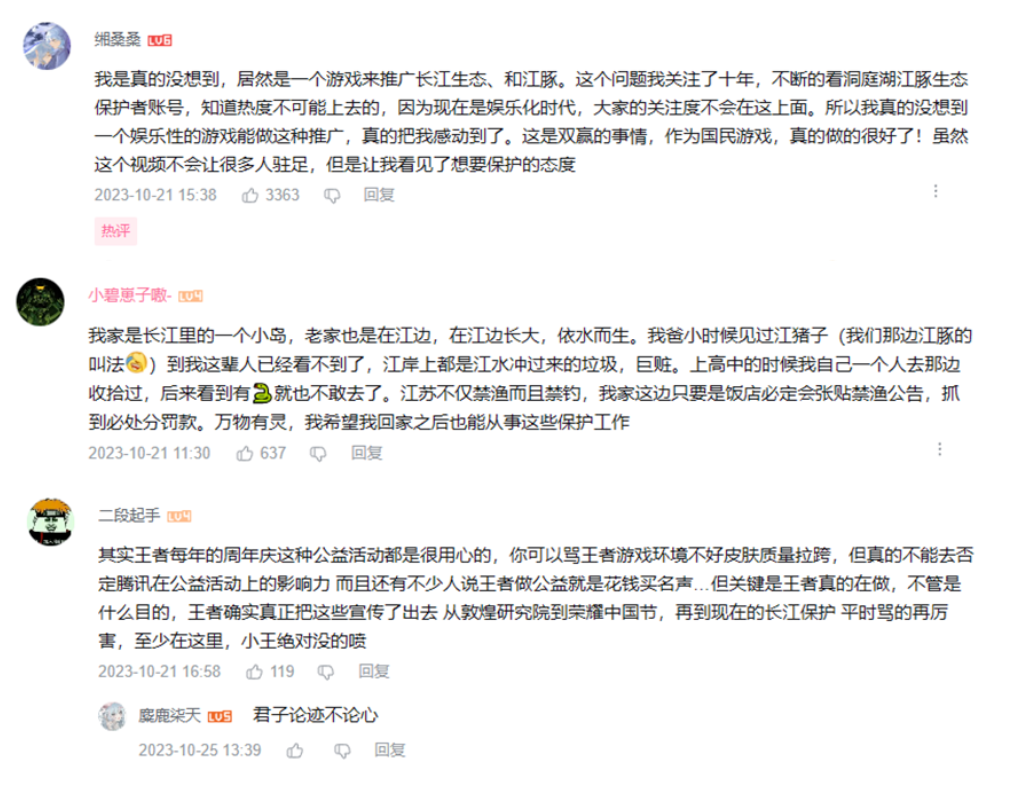 其实王者荣耀来推广长江生态、江豚等问题,也让很多玩家表示震惊,因为这是一个游戏团队呀。而且作为长江边上的住户也表示,生态保护是真的要重视。她爸爸小的时候还能看见江豚,但是在她这一辈小的时候,已经看不到江豚的出没了,她甚至还表示如果可以自己会回家从事这些动物的保护工作。