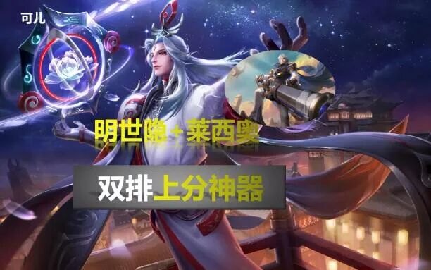 先说一个比较常见的,明世隐搭配莱西奥,这两个英雄的组合在所有射辅组合中可以说是最强的。