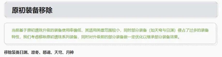 解读:移除的原因是因为这五件装备出场率过低,且侵占了过多的装备特性。