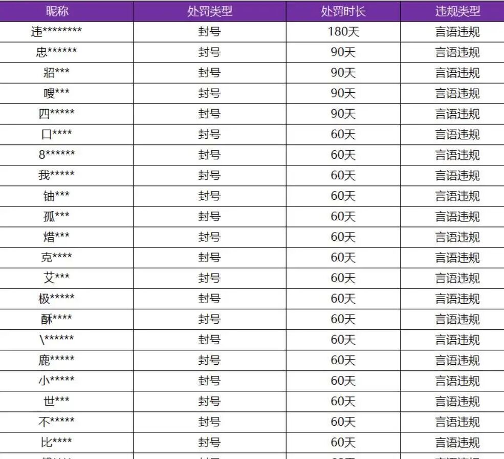 除此之外还有一些其他局内骂人的玩家账号,也都得到了不同程度的封禁,时间从180天到60天不等。