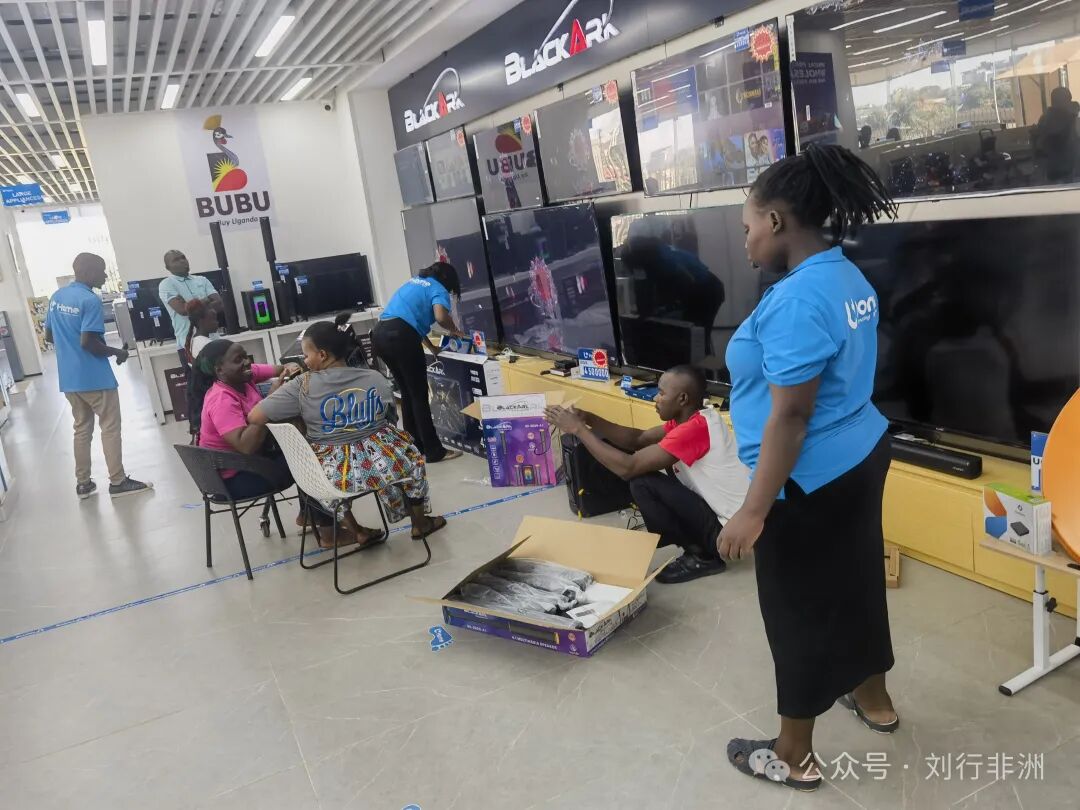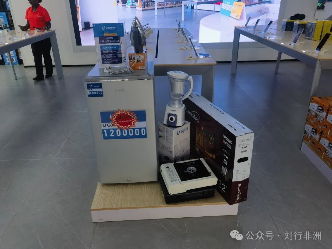 比如我们推出了一个套购,一台90L冰箱、一台32吋电视、一台电熨斗、一台榨汁机、一台gas灶具,合计100万先令,也就是人民币1899买这个六件套的意思。