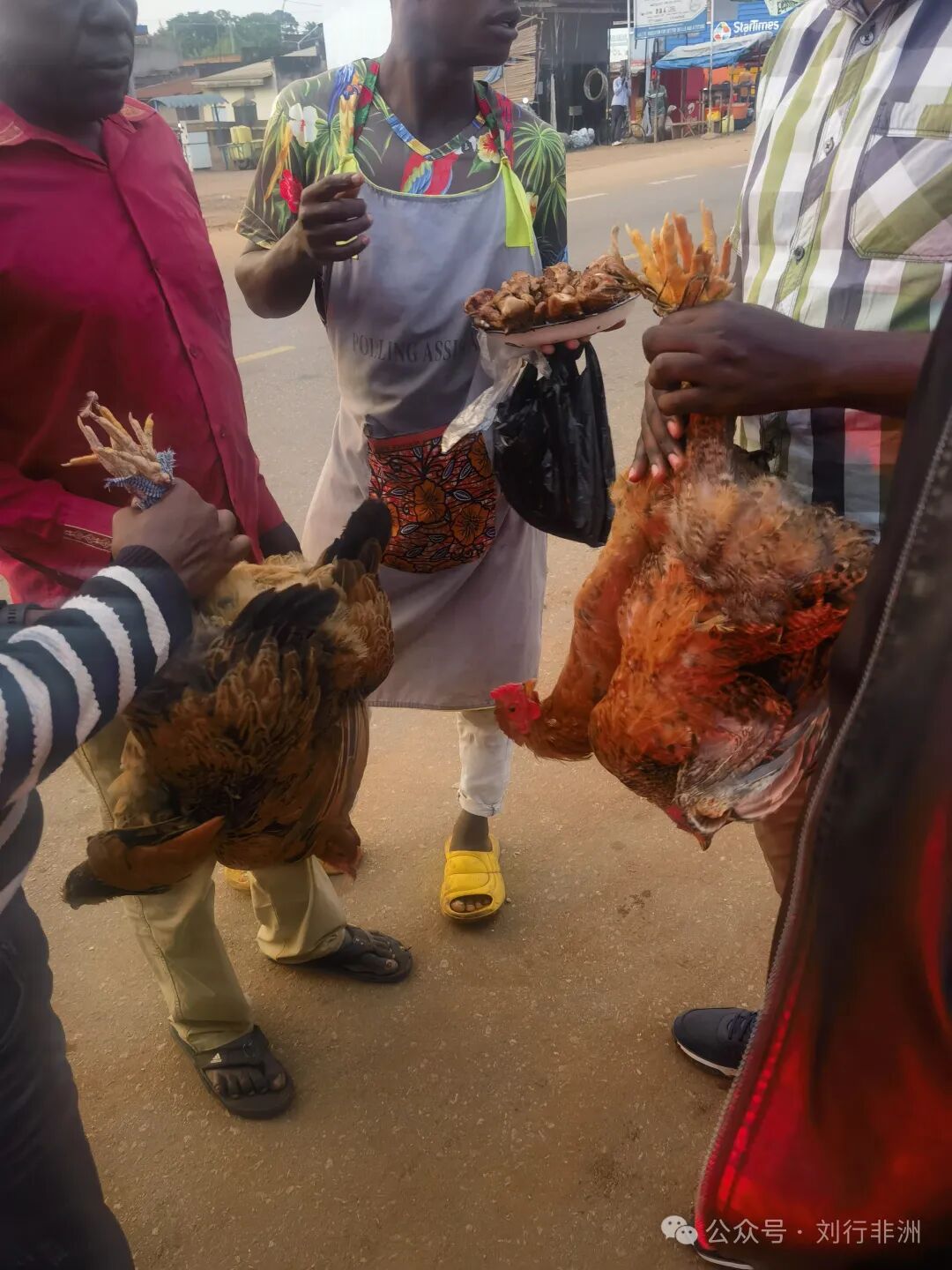 我们一伙儿八九个人,车上有我心腹黑人兄弟两个,几个乌干达大媒体记者,一个彪悍的司机,以及在路上买的芦花鸡,咯咯叫。