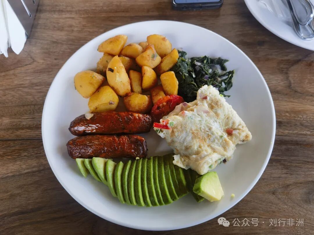 很多非洲人起得很早,六点钟街上很多车,八点就开始大堵车。我们一早窜了出来,八点半顺利到达金贾高档快餐厅,饱餐一顿。可惜餐馆上饭慢,连上带吃一小时,这就耽误了。