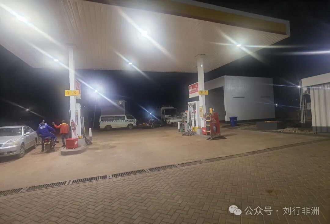 开到九点,在加油站小解,大家又买鸡腿吃,三千一个。我确实不敢吃这里的路边摊肉食,我并不是歧视非洲食物,我在北京吃路边摊烤串也不行。
