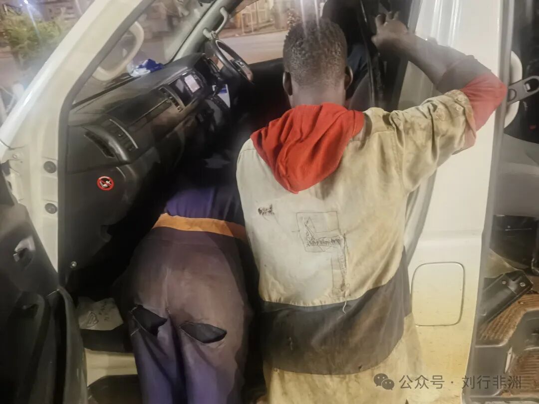 非洲车坏是常事。这些车全都是二手车。我去年干铁皮瓦,有一回老赵出差,车撂半路了,也是半夜。于是摇人,让宾馆派车接人。车也不修了,扔下司机安东尼在车上睡觉看车。
