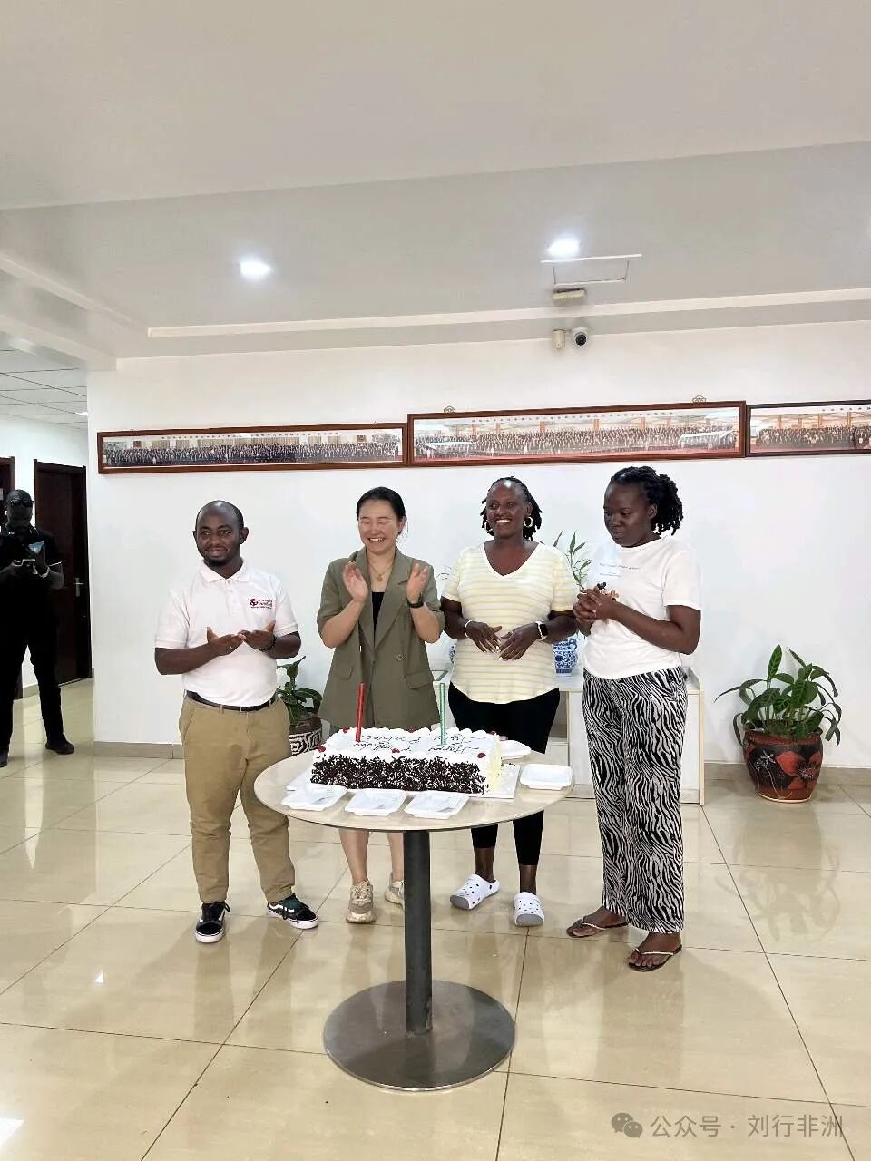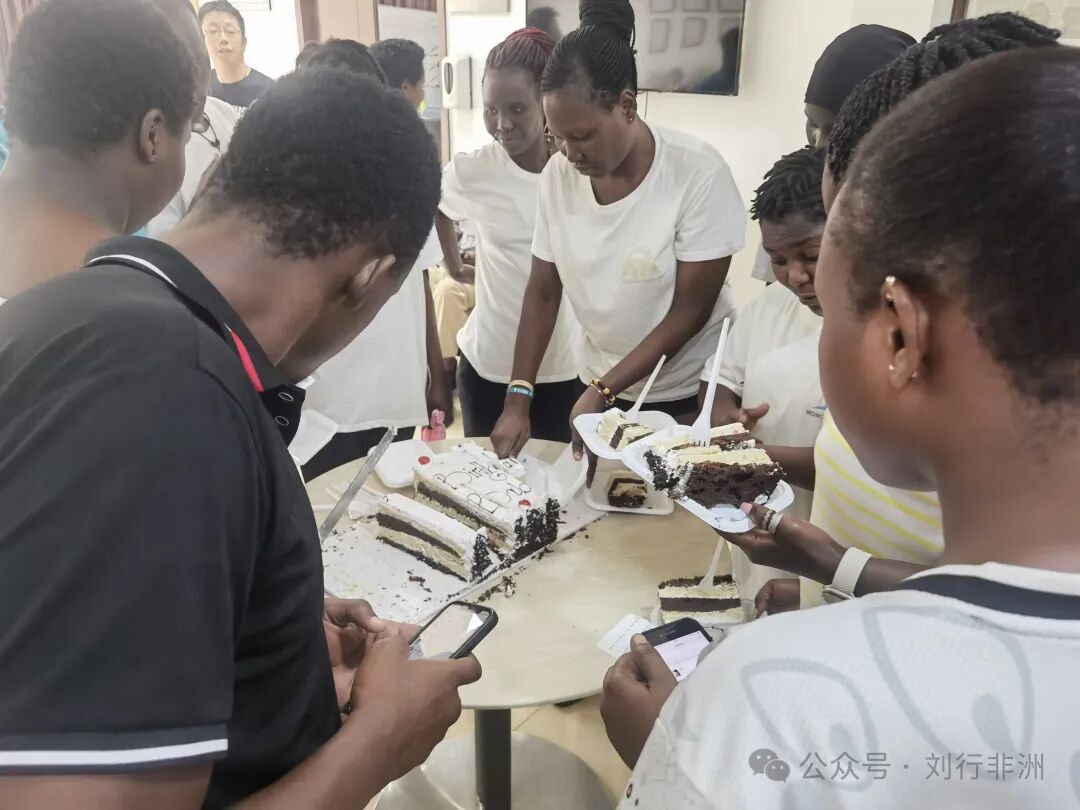 蛋糕就很对乌干达同事的口味,每月月末的周六,公司行政部都准备一块很大很大的蛋糕,给当月生日的同事热闹一下。
