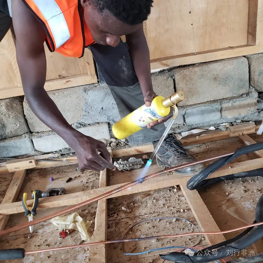 非洲空调安装,首先就得上一个二三百的稳压器,这玩意在国内就不存在。国内的电压技术很好,非洲这儿不上稳压器,空调准坏。再加上螺丝、挂架,再一个,这儿会安装空调的都少。这费用就上来了。