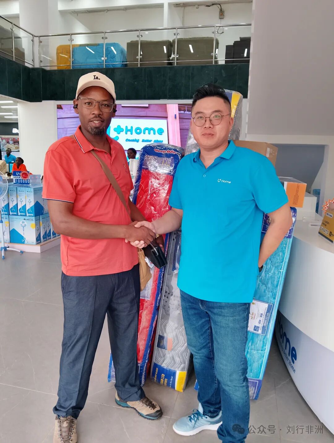 然后,这几天他下了飞机,来卖场看东西。昨晚跟我发微信,要来卖场,恰好我不在,他需要采购一些床垫,这玩意都是我们天唐工业园生产的,物美价廉,他在uhome买了四张床垫,这东西我没法打折。我敢说,乌干达的床垫,卷得跟中国差不多了,价格极好。乌干达上层到下层,睡的大部分都是天唐家纺的床垫。上到几千块的席梦思,下到几百元的海绵床垫,都实现了乌干达制造。所以昨天我只给了他一点点折扣,但老师想让我免费送货。