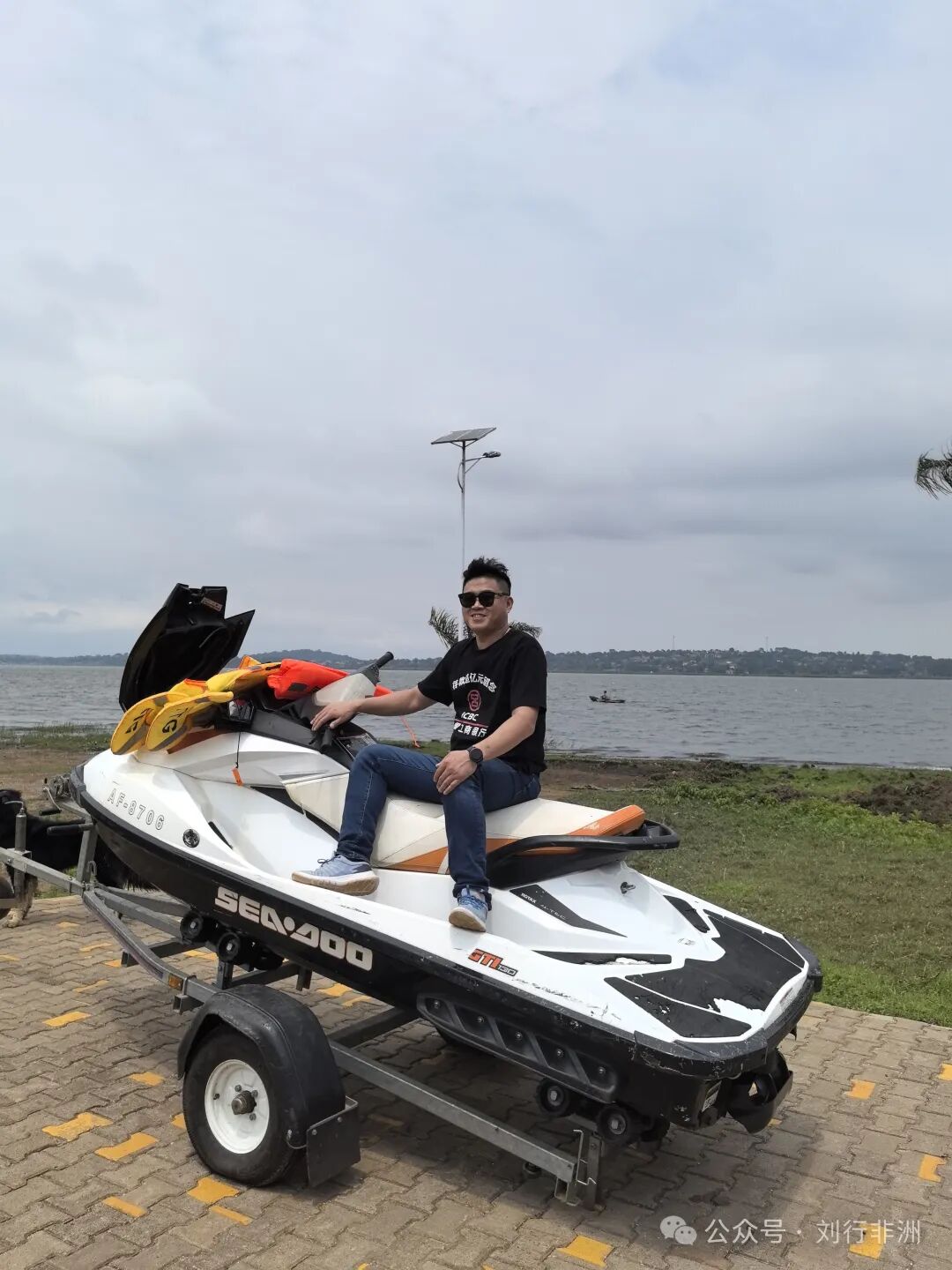 游完,这位西凤酒国花瓷非洲总经理,带着美女同事去骑摩托艇,翻船了。