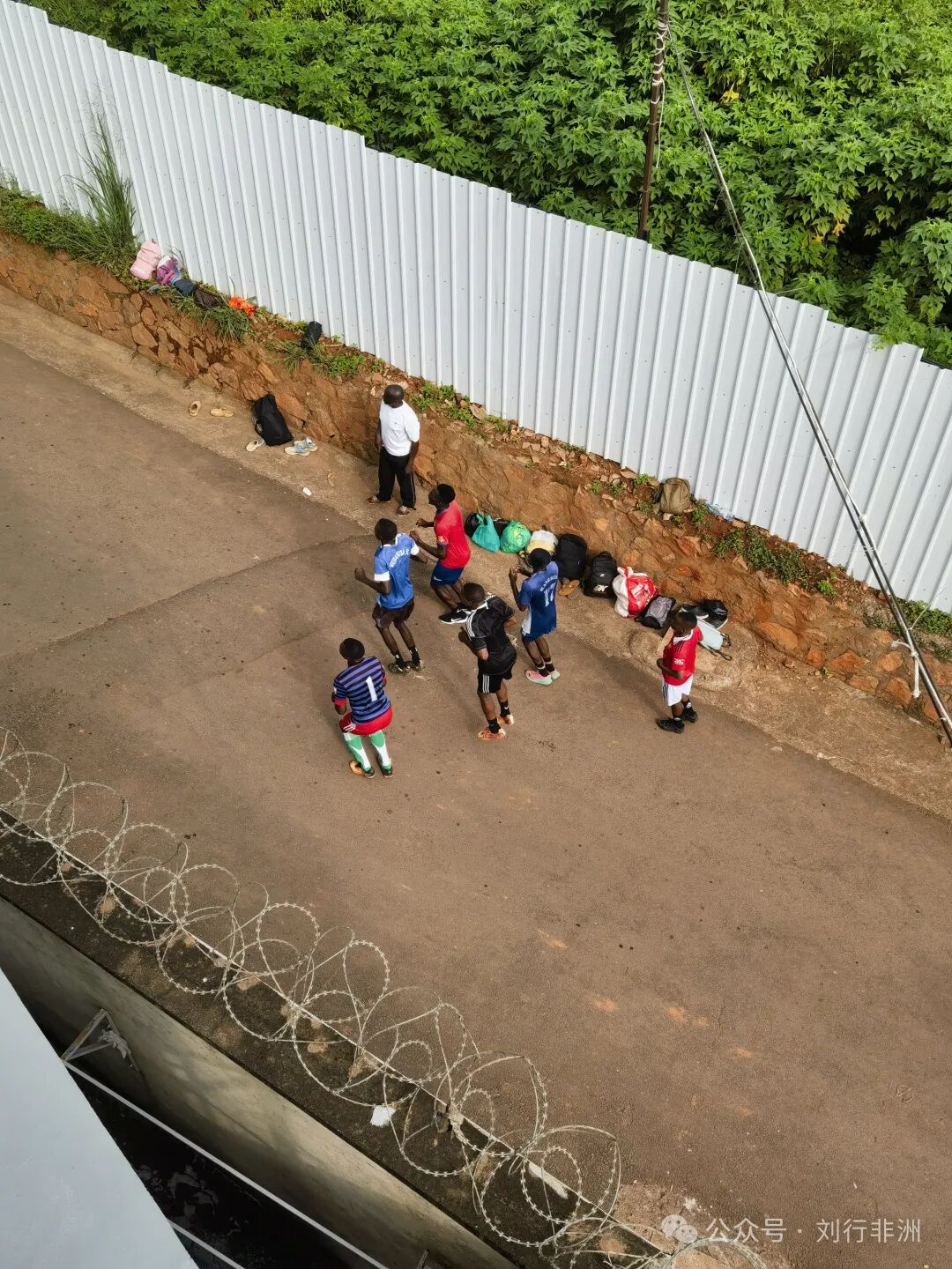 印度人在打板球的时候,乌干达人是很礼貌地躲开的,他们在南京酒店的下坡夹道里练足球。