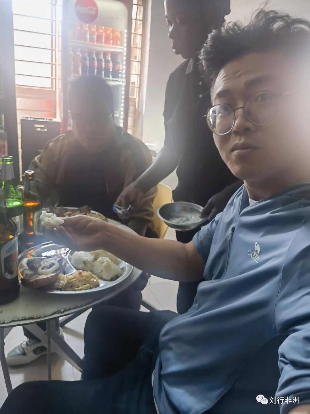 来了非洲一个多月了,也见过当地人一起席地而坐,围盆而食,一边聊天,一边灵活地把希玛攥成团,蘸菜汁吃。我偶尔搬个凳子,跟保安、保姆等人一起聊天,那天保安杀了一只鸡,在薅鸡毛,保姆在洗衣服,我在学英文。如果有一天能与黑人朋友们促膝围坐,扪虱而谈,共食希玛,那一定就如苏东坡生活在海南岛,自是一种风流。