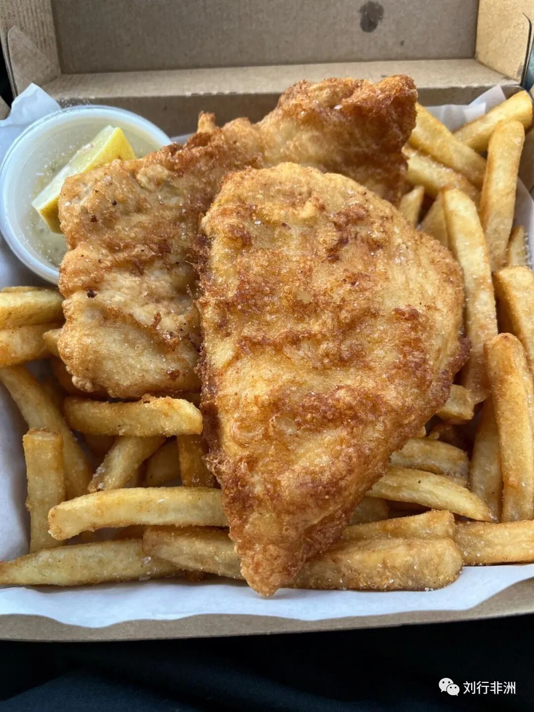 我买了一份fish&chips,可是不便宜,120夸查。认识这个可是有20多年了。小时候学英文,课文配图就是英国街头食物fish&chips,地位就像中国的鸡蛋灌饼。看那样子一定很好吃,油炸的肯定差不了。我们中学食堂完全没有人道,上学伙食有比坐监,一点油水没有,油炸的fish&chips确实看着不错。真没想到二十多年后,我在英国前殖民地吃到了fish&chips。