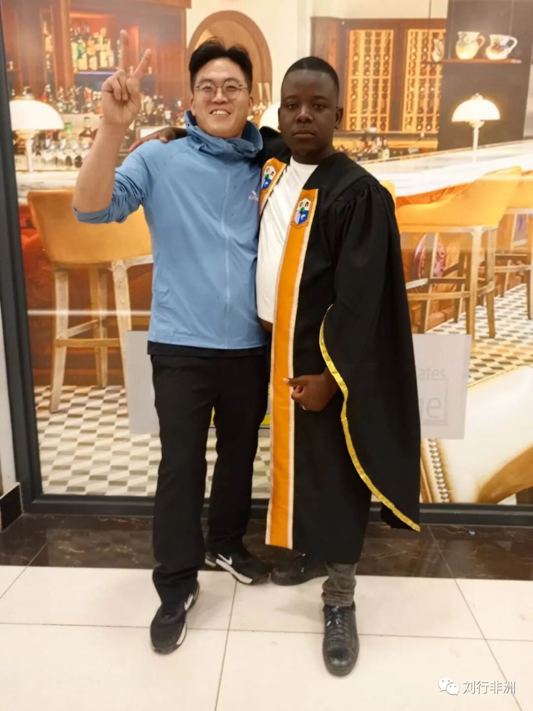 两天前去铜带省大学发传单,看到很多人在为毕业典礼准备,这个party上也来了很多穿着学士礼服的疯狂大学生,拉着外国人不松手,要跟我合影。