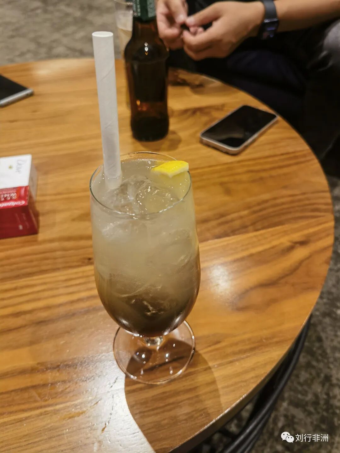 这件事很神奇,不管在哪个国家,是哪个民族,大家都发明了自己的语言,除了中文字正腔圆,其他都呜哩哇啦,但都能学和被学,且能会。晚上的时候,领导找我们谈事情,一起在楼下喝了一杯,我喝不了啤酒,于是去点了一杯长岛冰茶。