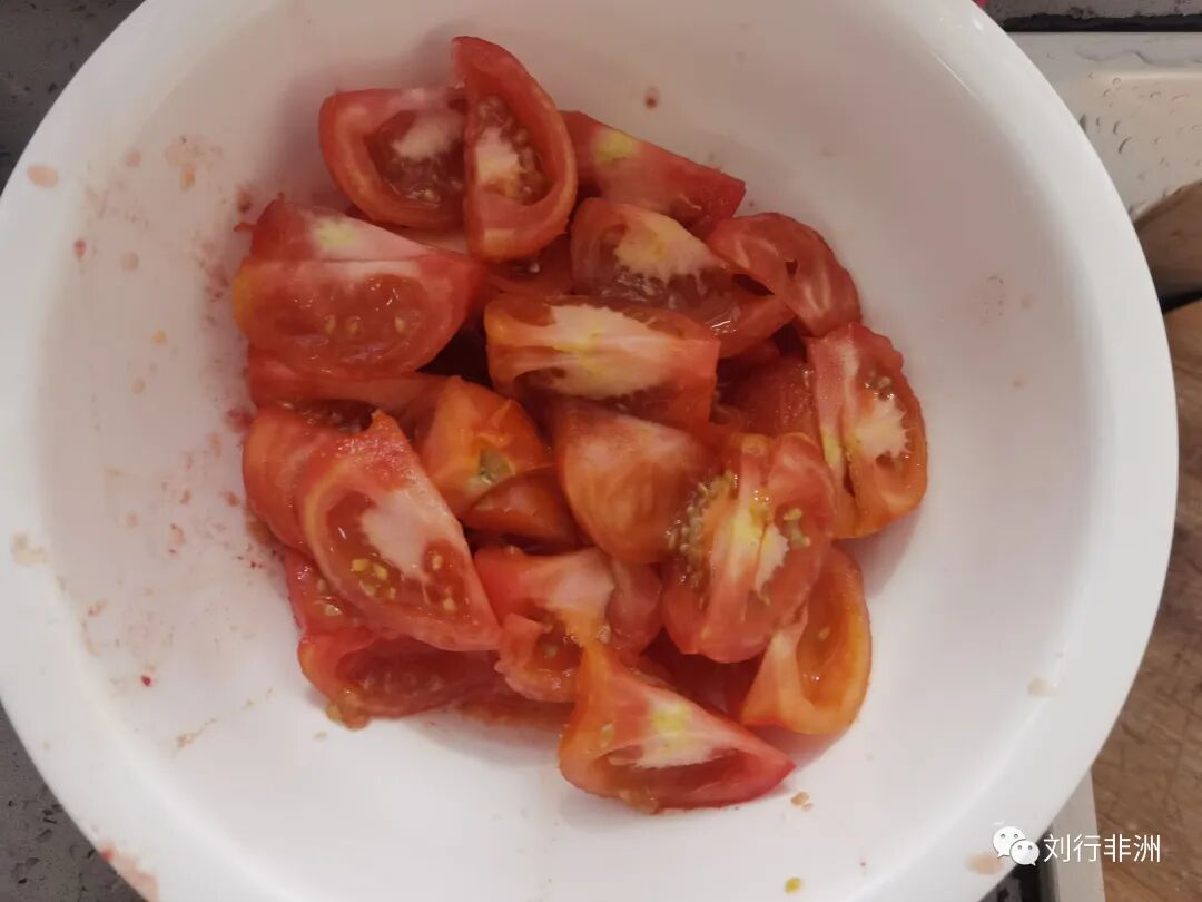 西红柿炒鸡蛋。西红柿要烫了去皮,这是精细处,为的是能迅速炒出西红柿汁,要是带皮,出汁会差一些。细节在此处。做事要看细节。