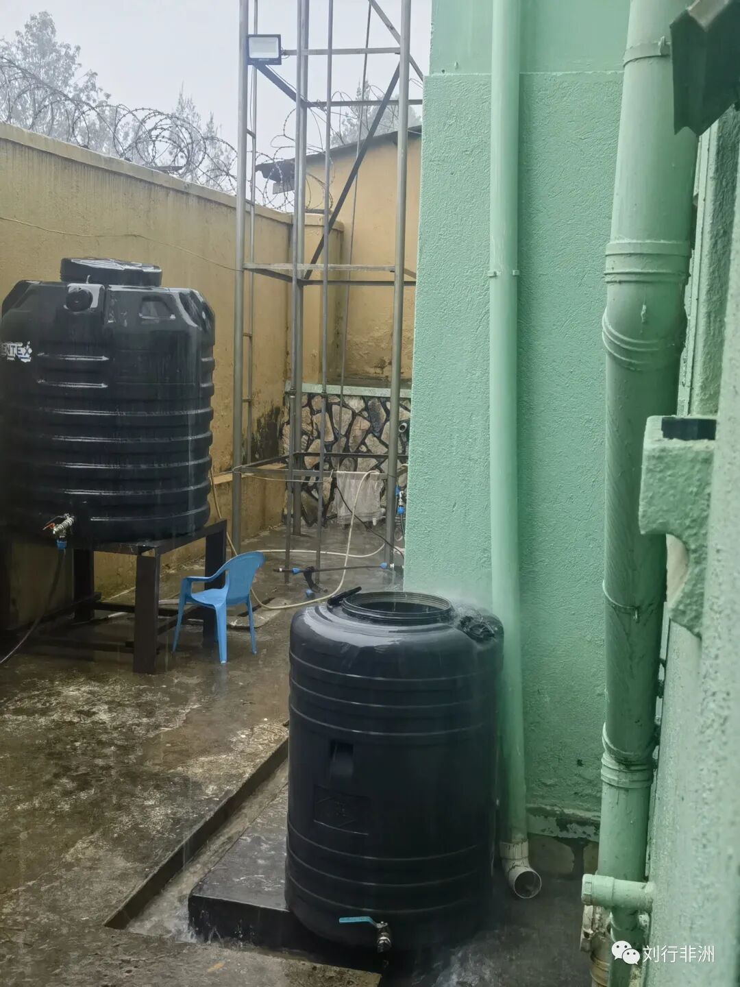 回到家发现今天是有水有电。哈哈哈。早晨没电,跑去公司充了一上午电。昨天下大雨又没水又没电,老高拿大桶去接雨水,说,马桶总得冲。哈哈哈。非洲的雨季果然凶猛,这么大桶,一会儿就接满了。