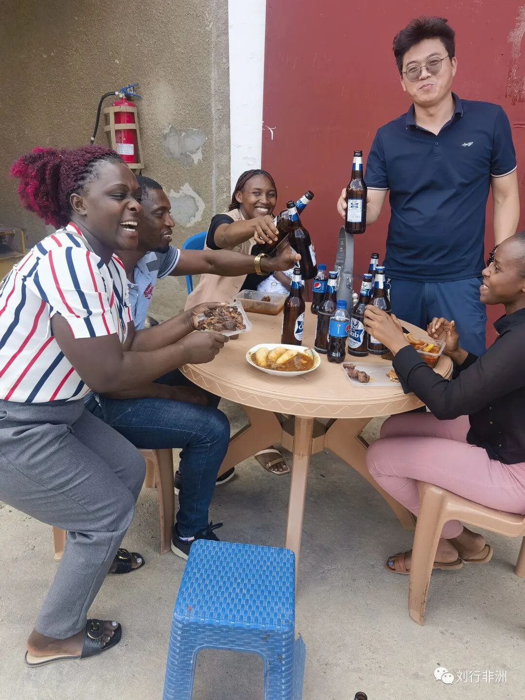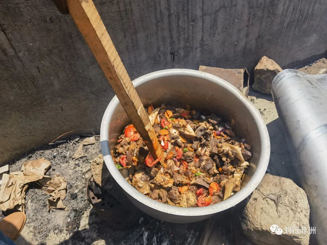 上次欢送老赵,买了一只羊。黑人说,不要洗,洗了不好吃。老赵会吃,用西非方法炖羊肉,洗肉的时候,黑人员工看了直摇头。