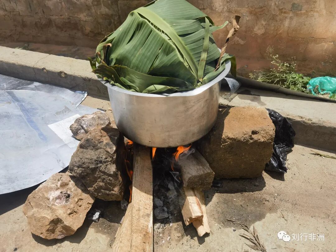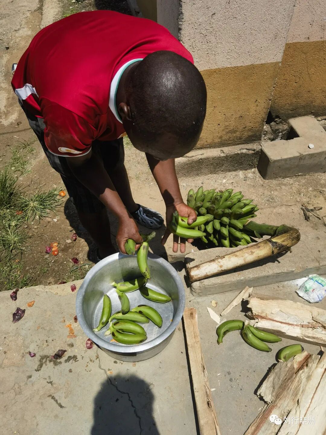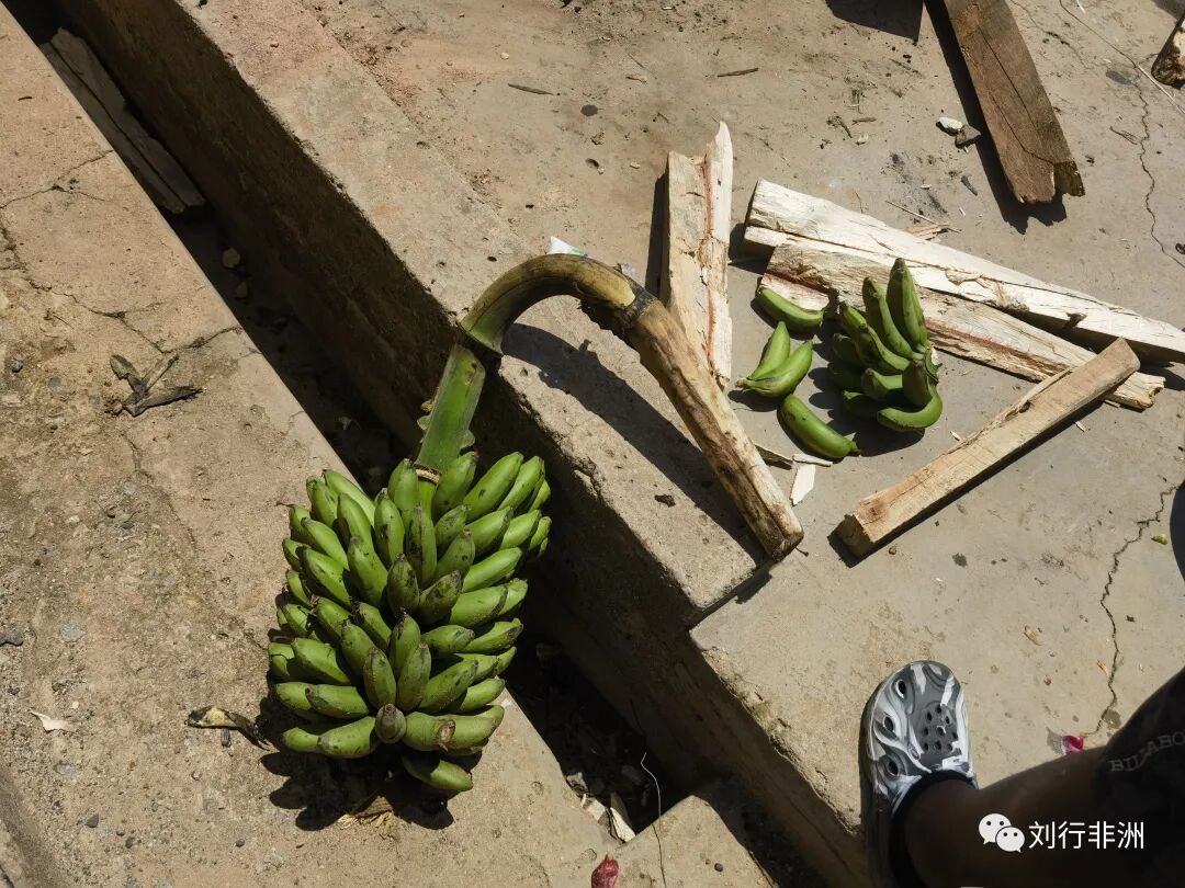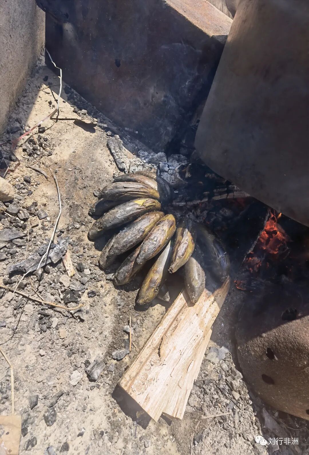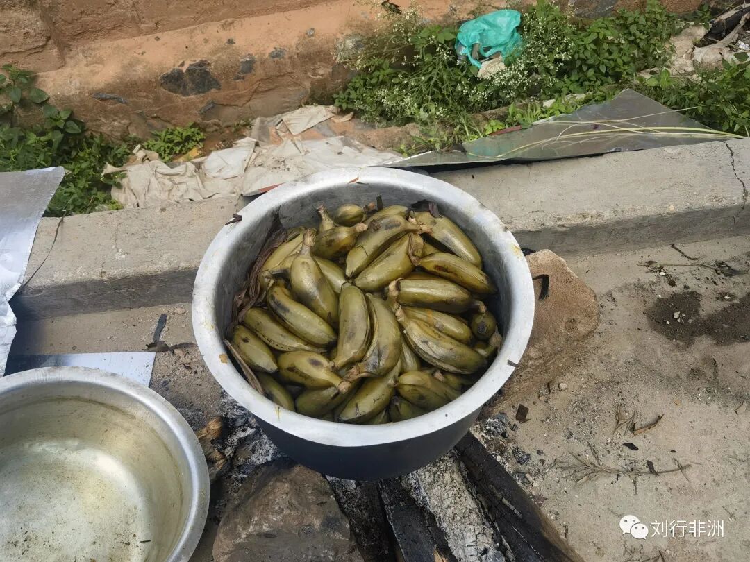 本地黑人吃香蕉、红薯,买来一挂青蕉,摘了放锅里煮。我在搅锅的时候发现,火边还烤着一大呱哒香蕉。是的。香蕉是这儿的主食,烤着吃,这种香蕉不能生吃。