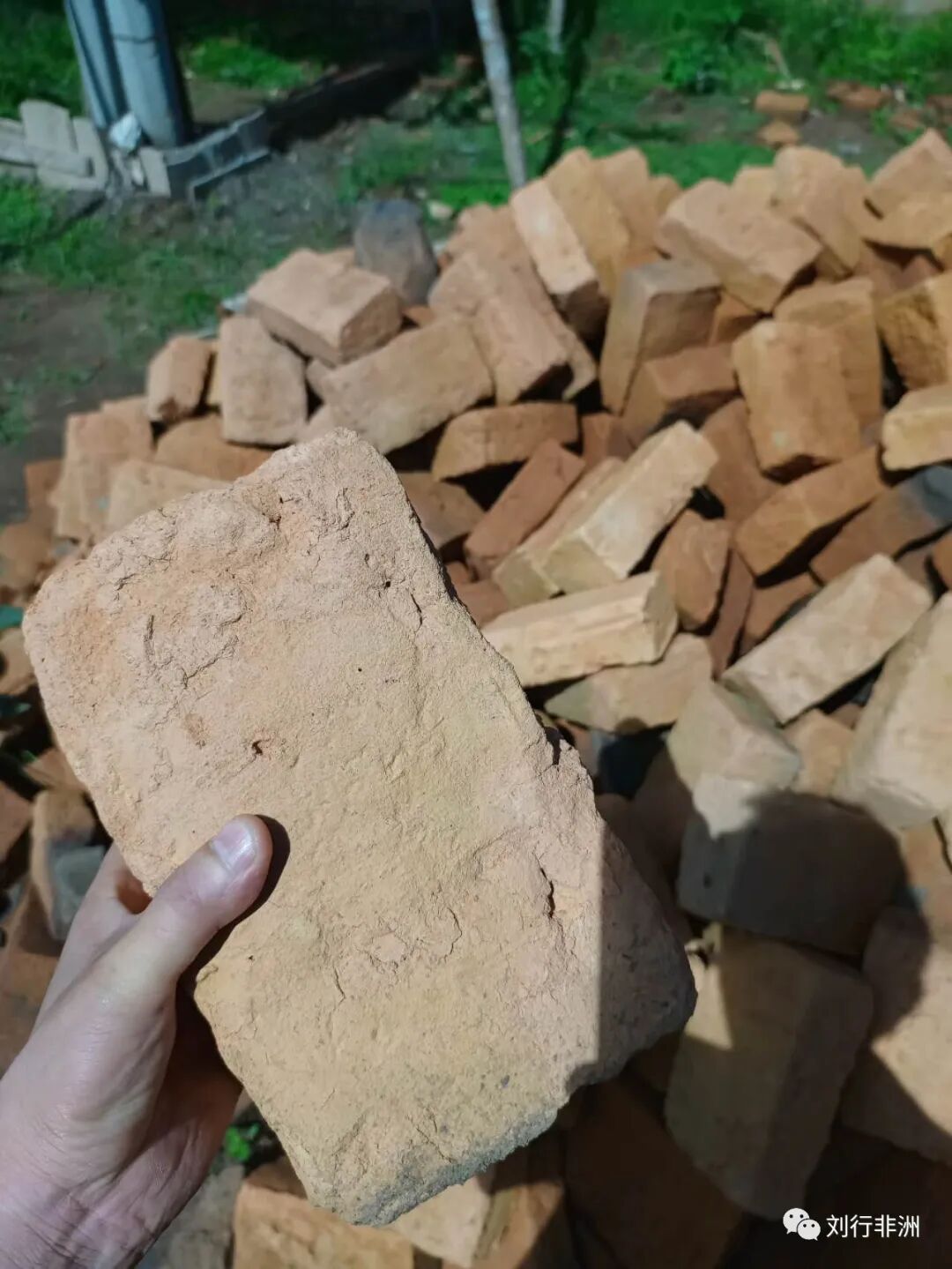 我手上拿的这块,就是胶泥块。这还没烧成呢就拿来盖房子了。是个半成品。
