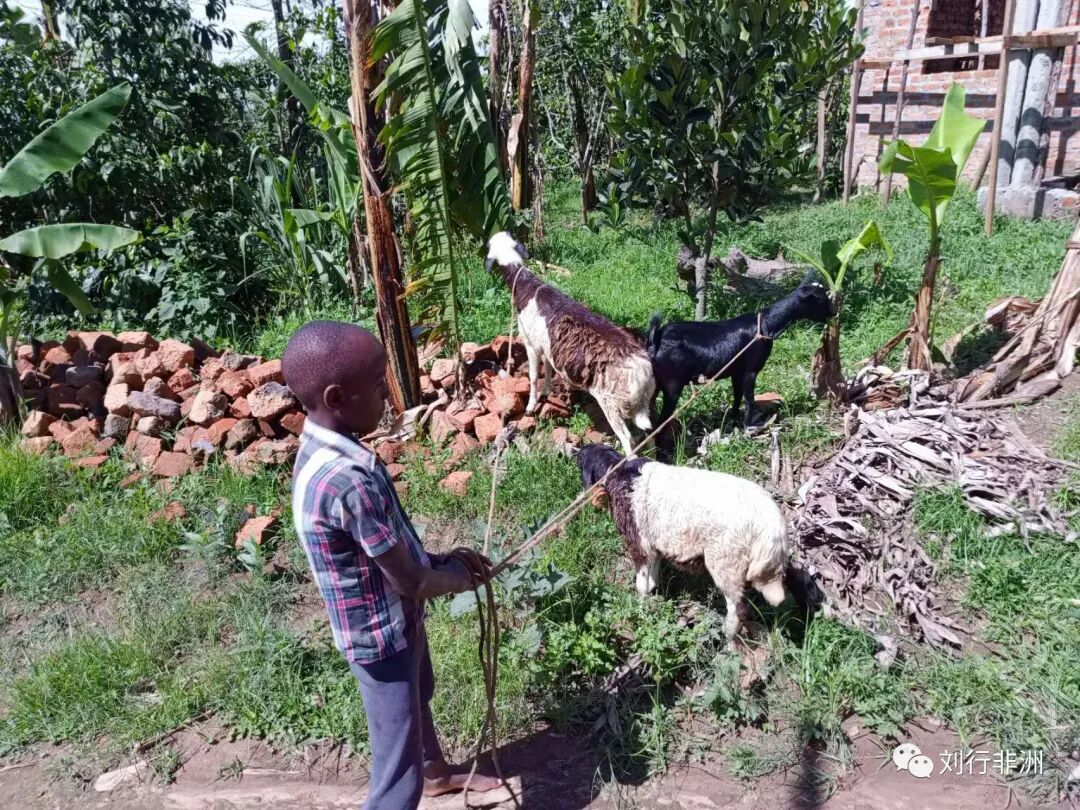 这是羊舍。这儿的羊也咩咩叫,拉的羊粪蛋也是黑的,也跟花生米一样大小。羊有啥稀奇,都一样。牛不太一样。这儿的牛,犄角奇大无比。半米长。黑人和中国人也差不多,可能某个器官大一些。哈哈哈