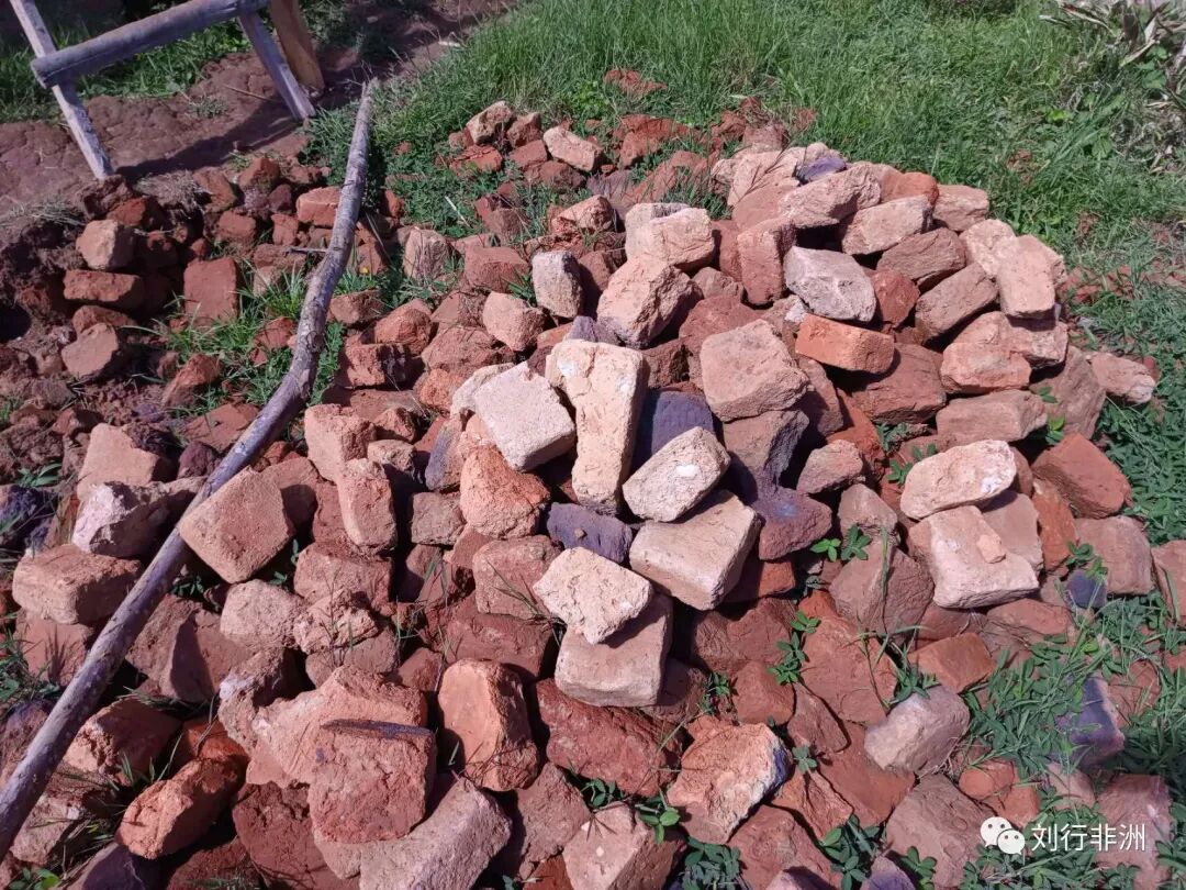 这砖质量很差,砖的原料很好,到处是胶泥,但这儿没有煤,也许是本地黑人用不起煤,他们用木头烧砖。靠着火近的,砖烧得好一些,远的也就是把胶泥块烧得硬了一点。