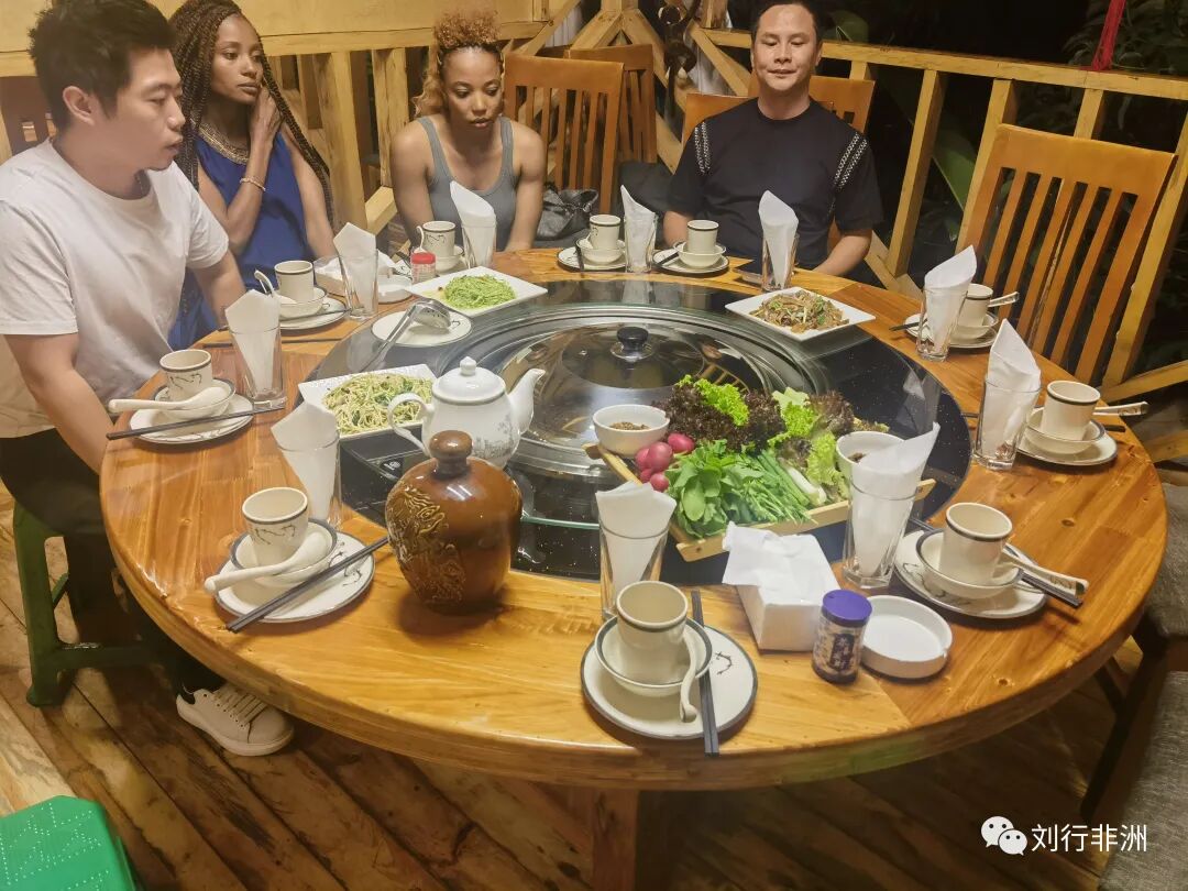 虽然吃的是东北大地锅,但这是个高端锅局。因为有乌干达美女参加。一桌人眼睛都直了。这谁看谁不迷糊?