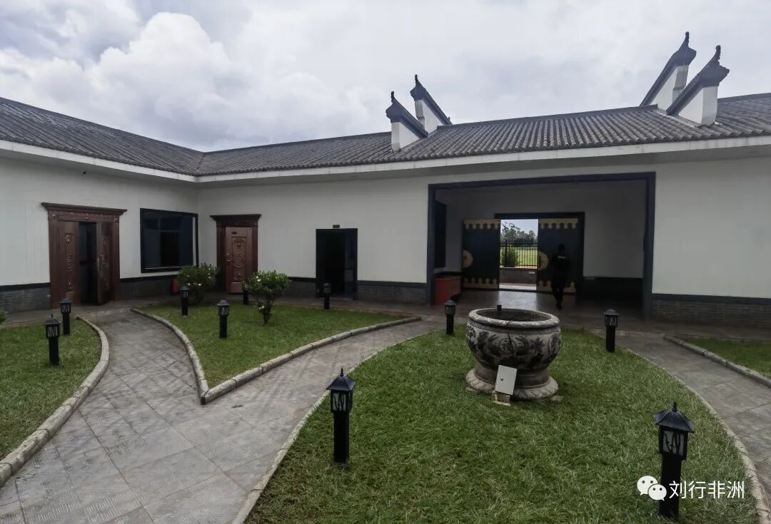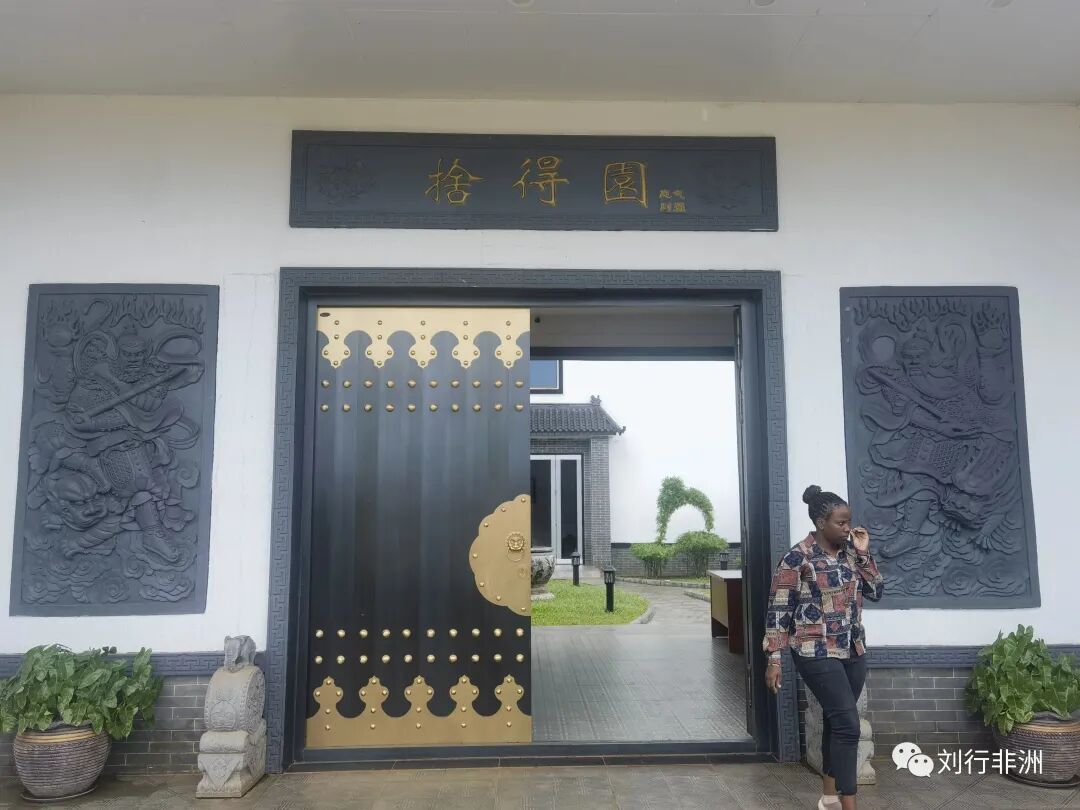 到了门口,负责接待的张经理顺手拉过一个黑人小伙子给我们拍照留念。园区门口地上有个标记,张经理说,这是老穆总统剪彩合影站过的地方。