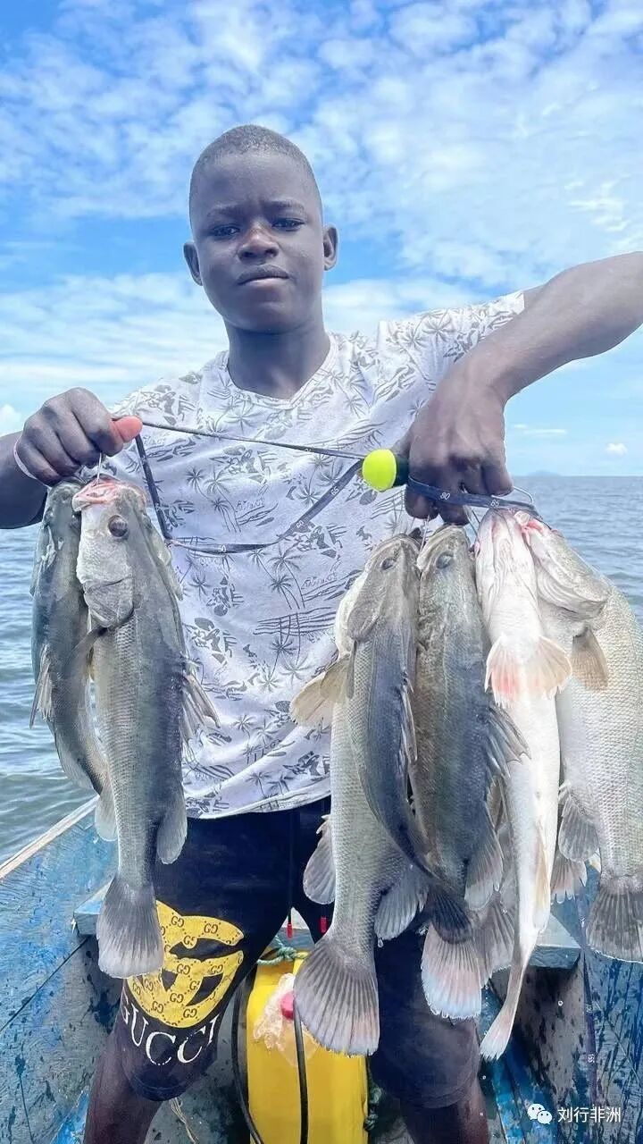 这位哥带着黑人徒弟钓鱼,卖鱼,生活得不错,看这鱼获巨口细鳞,鲈鱼无疑。