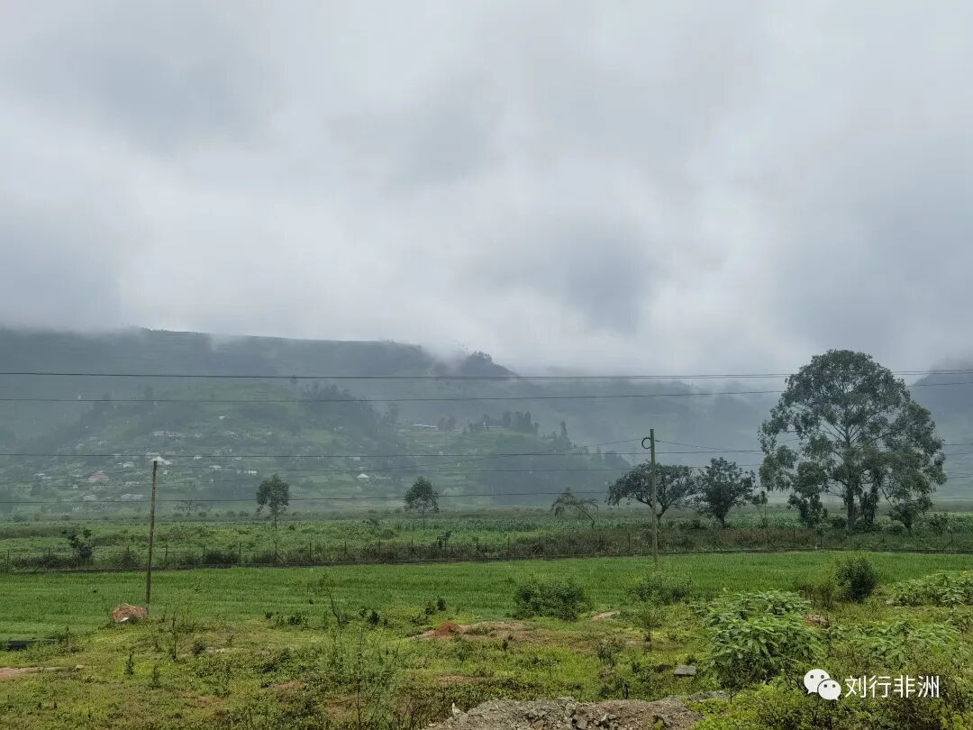 早晨去边境接人,乌干达和卢旺达的边境真是风景美如画,细雨蒙蒙,山头云雾缭绕,仙气飘飘,一派江南气象。